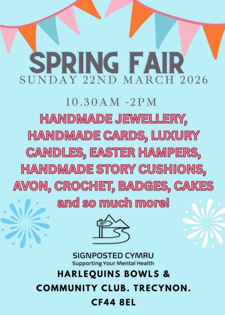The craft fair is taking place at Harlequins Bowls and community club, Trecynon, Aberdare, CF44 8EL