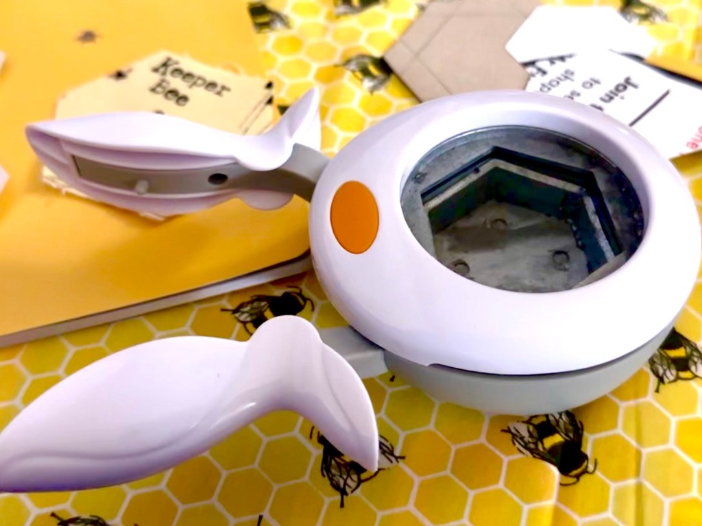 So I bought this… Its a Fiskars 1” hexagon hole punch!!!! It literally saved this project and I 100% recommend getting one to save you cutting individual paper hexies. Here’s a link to them on amazon.